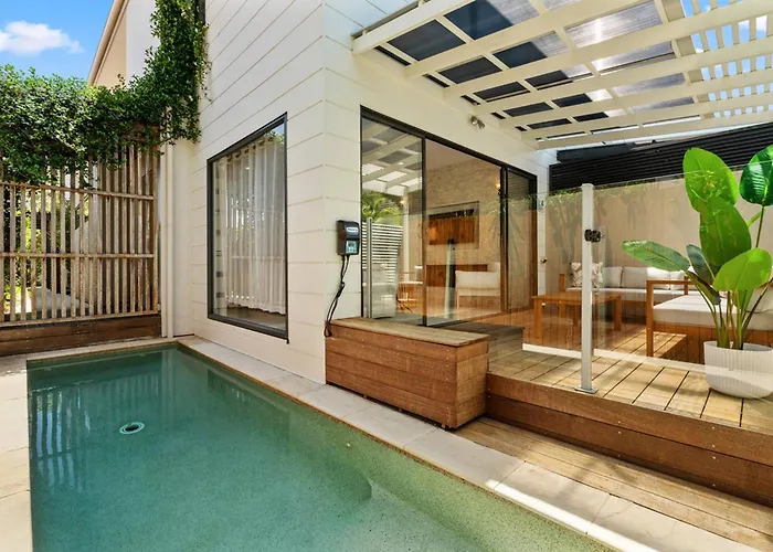 This holiday home is nestled in the Palm Beach district, 2.5 km from the heritage - listed zoological garden "Currumbin Wildlife Sanctuary". Laguna Park is about 400 metres away. Palm Beach Retreat: Plunge Pool & Coastal Luxe villa provides easy access to natural wonders such as the Tallebudgera Creek Conservation Park (3.8 km) and the Burleigh Head National Park (4.2 km).